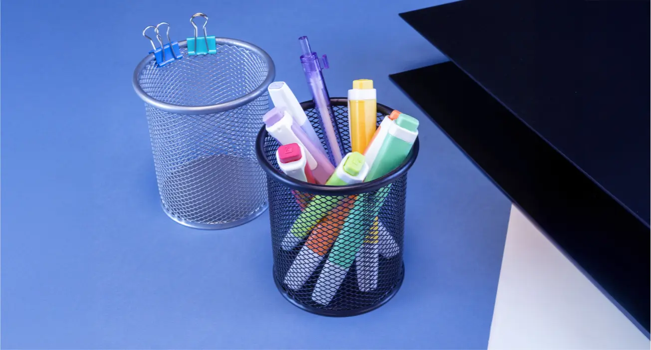 Nuestro portalápices está diseñado con un material sólido y estable, pensado para un uso intensivo. Mantiene los lapiceros firmes, evita vuelcos y funciona como un organizador de escritorio duradero para oficina, estudio o despacho en casa sin preocuparse por roturas o desgaste.