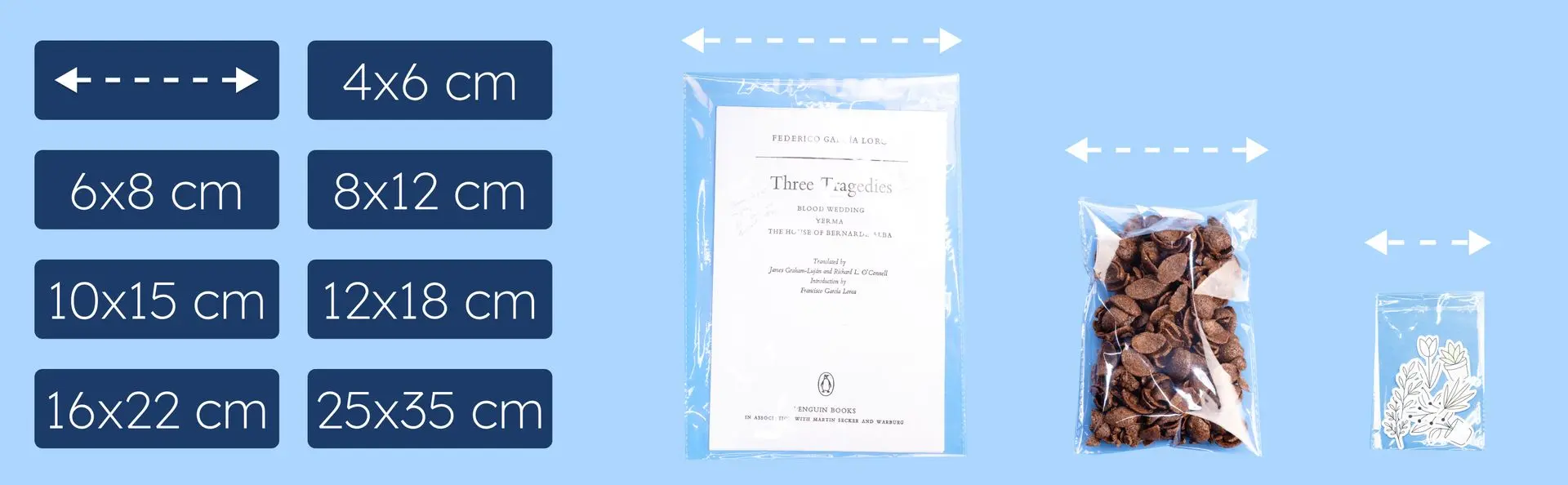 Incorporan un cierre autoadhesivo reutilizable, que permite abrir y cerrar múltiples veces sin perder adherencia, junto con costura sellada para mayor resistencia y seguridad. Son ideales para chuches, dulces, detalles de fiesta, packs de stickers, pequeños regalos, documentación y merchandising, especialmente cuando se requiere un packaging rápido y ordenado, sin lazos ni termosellado.